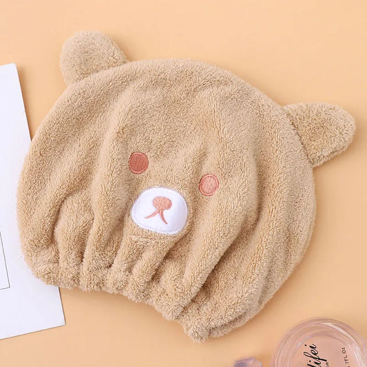 Teddy Bear Hair Drying Cap - Super Absorbent & Quick Drying Towel