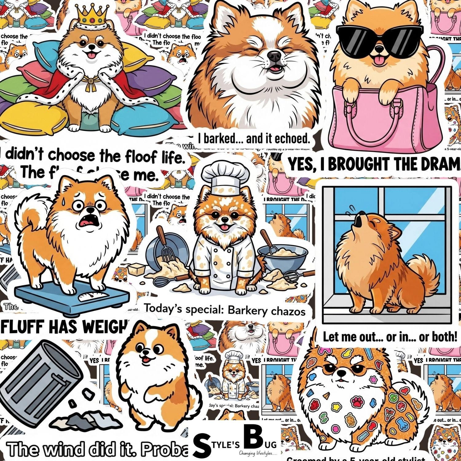 🎒 Stick ’em on your phone case, makeup bag, planner, or pup carrier — wherever there’s glam, drama, or glitter, your **Pom demands to be seen.