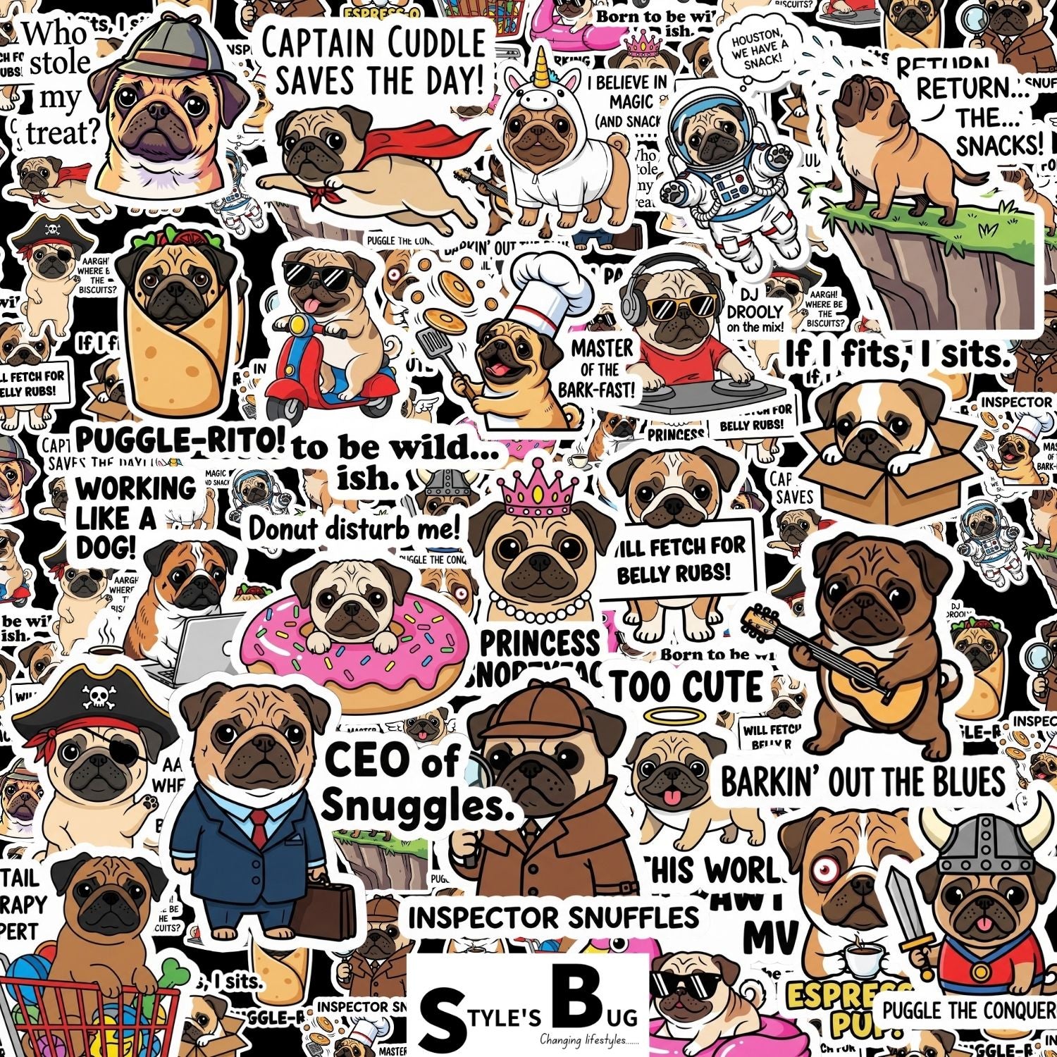 🐾 Say hello to the Pug Sticker Pack by Style's Bug!